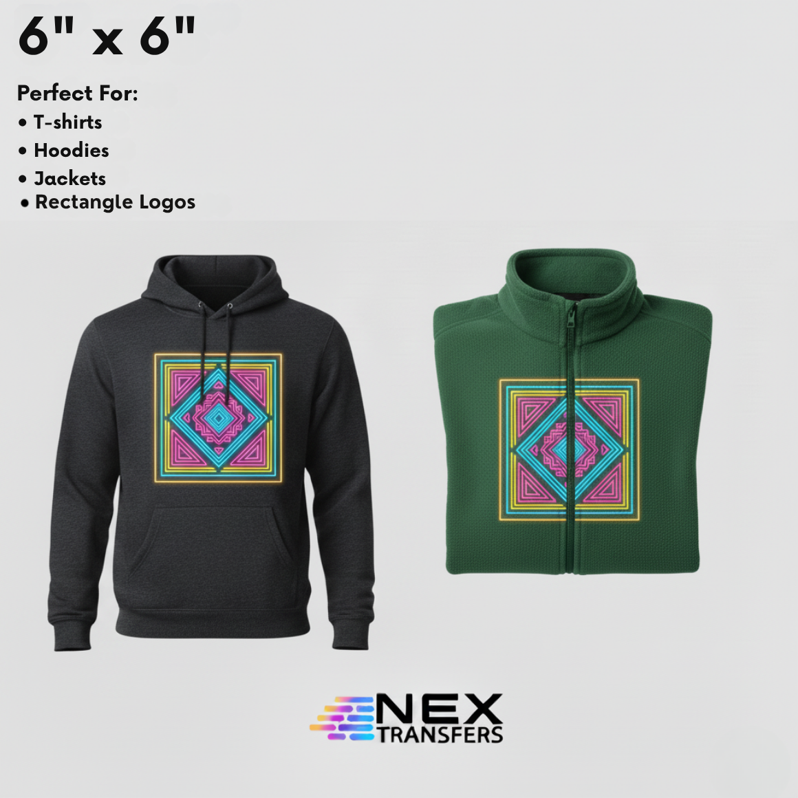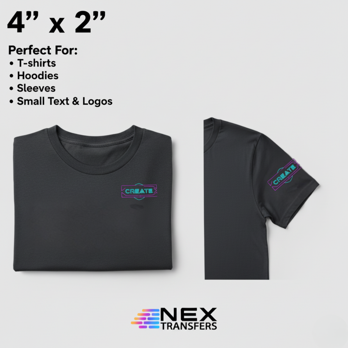 Direct-to-Film (DTF) prints your artwork onto a carrier film, then heat-presses it to the garment. Expect vivid color, fine detail, a soft hand, and strong wash durability—on cotton, polyester, blends, and more. No weeding, great for light or dark fabrics.